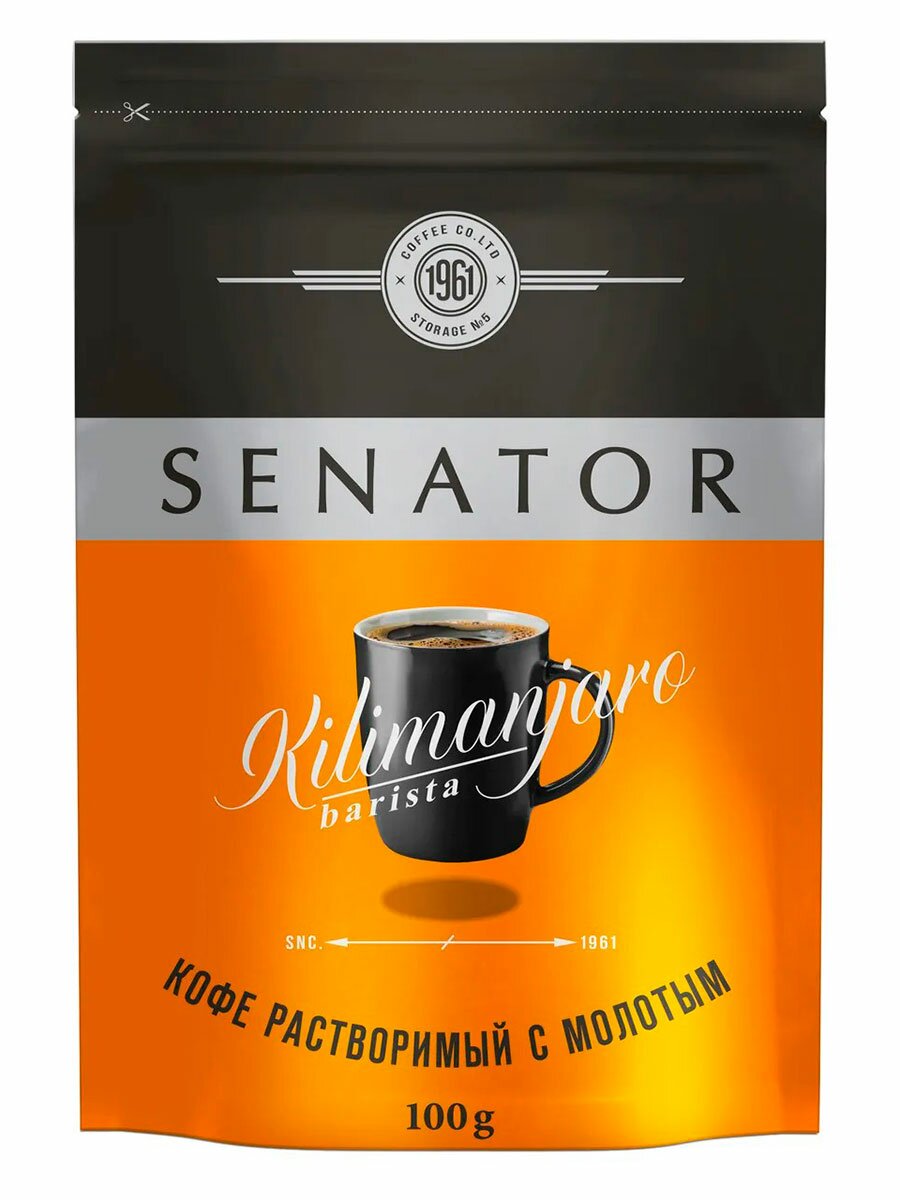 Кофе Senator Kilimanjaro Barista растворимый сублимированный с добавлением молотого кофе 75г